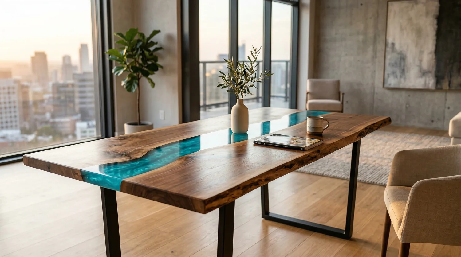 ResinLab — это мастерская, где рождается уникальная мебель. Мы объединяем тепло натурального дерева с современными технологиями работы с эпоксидной смолой. Каждый стол — это не просто мебель, а история, созданная специально для вас.